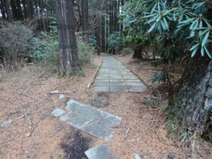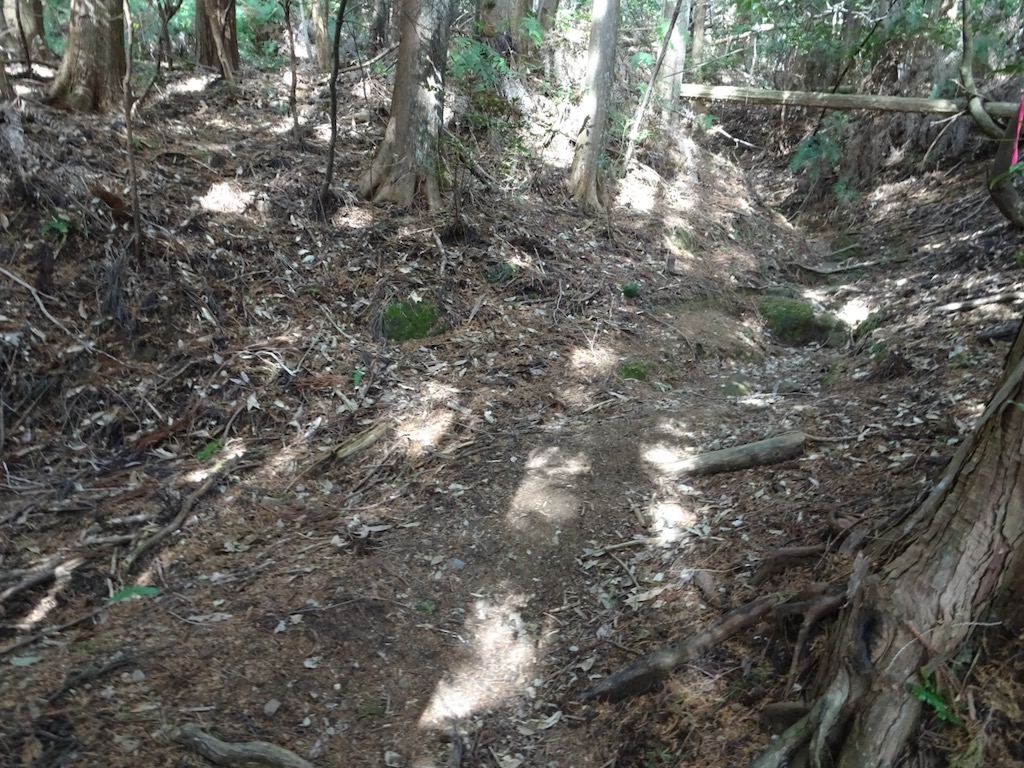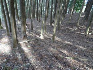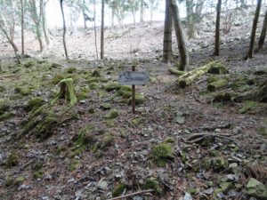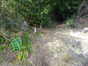 荒れた遊歩道を下ると、「山畑跡」の標識がある。畑があったのだろうか?とてもそんな風には見えないが。。。