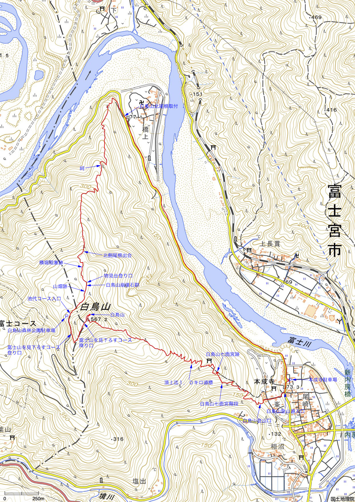 行程詳細 本成寺駐車場(8:55-9:30)→ 白鳥山登山口(9:36)→ 白鳥山七面宮跡(9:54-9:58)→ 白鳥山山頂(10:38-11:38)→
