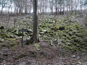 山頂から「富士山を見下ろすコース」を降り、「池代コース」に入ったため、北側尾根へのアプローチがイレギュラーになった。途中の「山畑跡」や「白鳥山崩壊石群」、「横堀阻塞跡」などを見られたものの、事前にルートを知っていないと周回して駐車場に戻ってしまう。