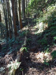 林道の途中から西又峠ヘと降りる登山道(写真上)に入り、