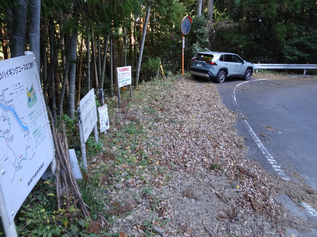 入口の路肩に3台、林道の西又側にも数台停められる場所が2〜3個所ある。