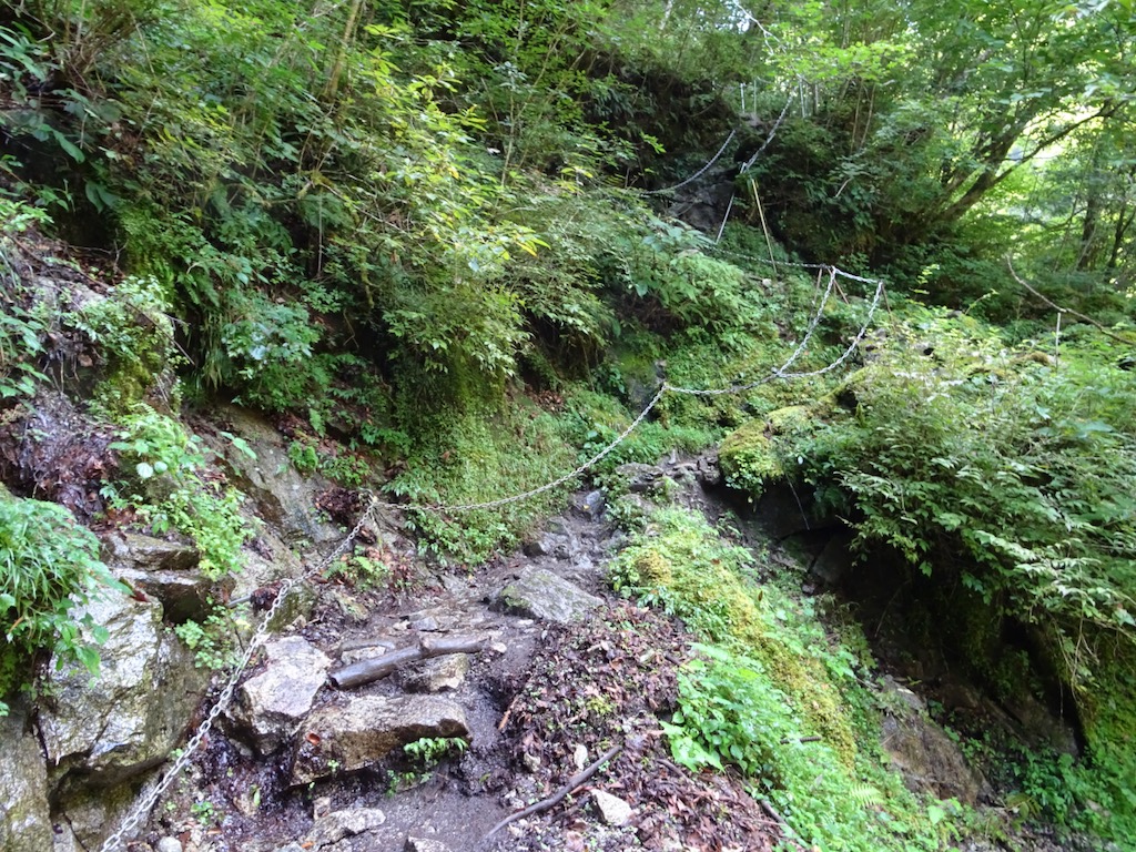 渓谷内では濡れた岩場の登り降りが多くあり、滑りやすいので注意が必要だ。