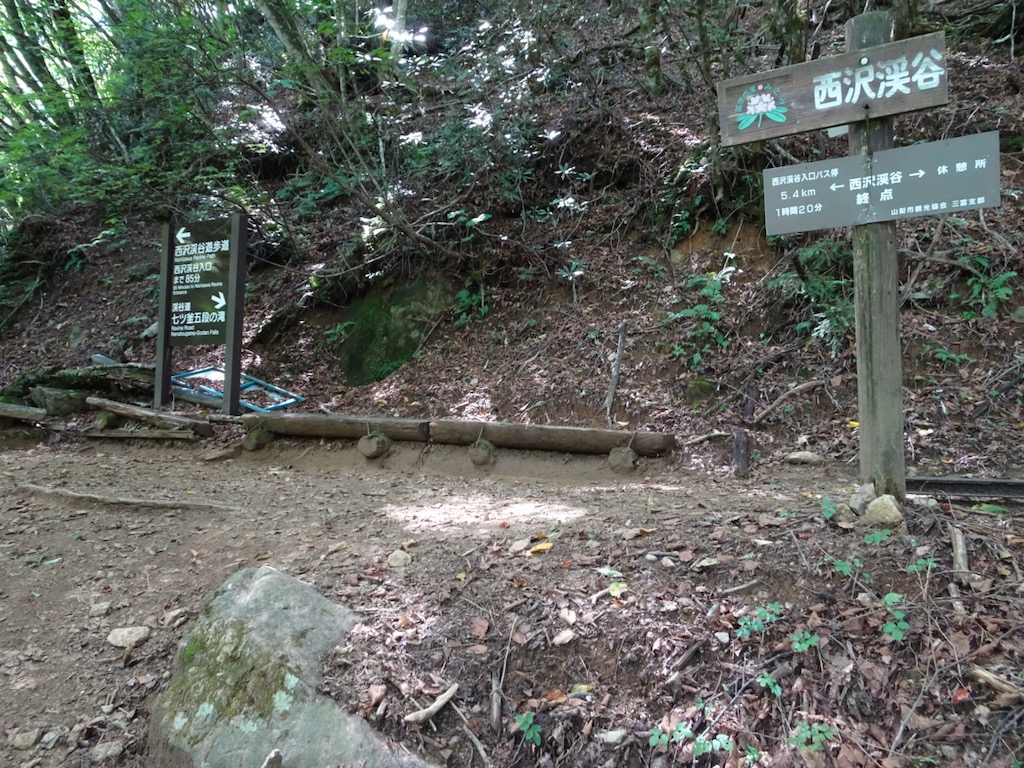 行程詳細 西沢渓谷駐車場(8:25-8:45)→ なれい沢広場(9:04)→ 近丸新道登山口(9:07)→ 徳ちゃん新道登山口(9:13)→