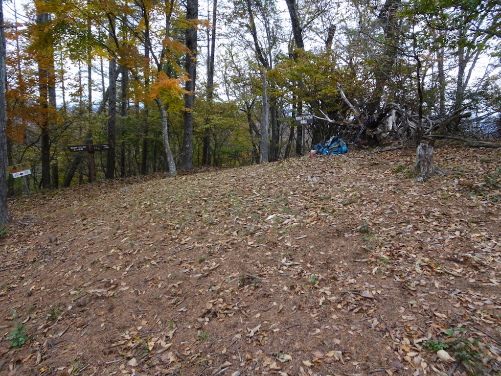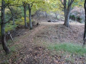 尾根に戻るとすぐにゆるみ、しばらくして向原峠(写真下)に降り立つ。右前方に向原への道が分かれる。
