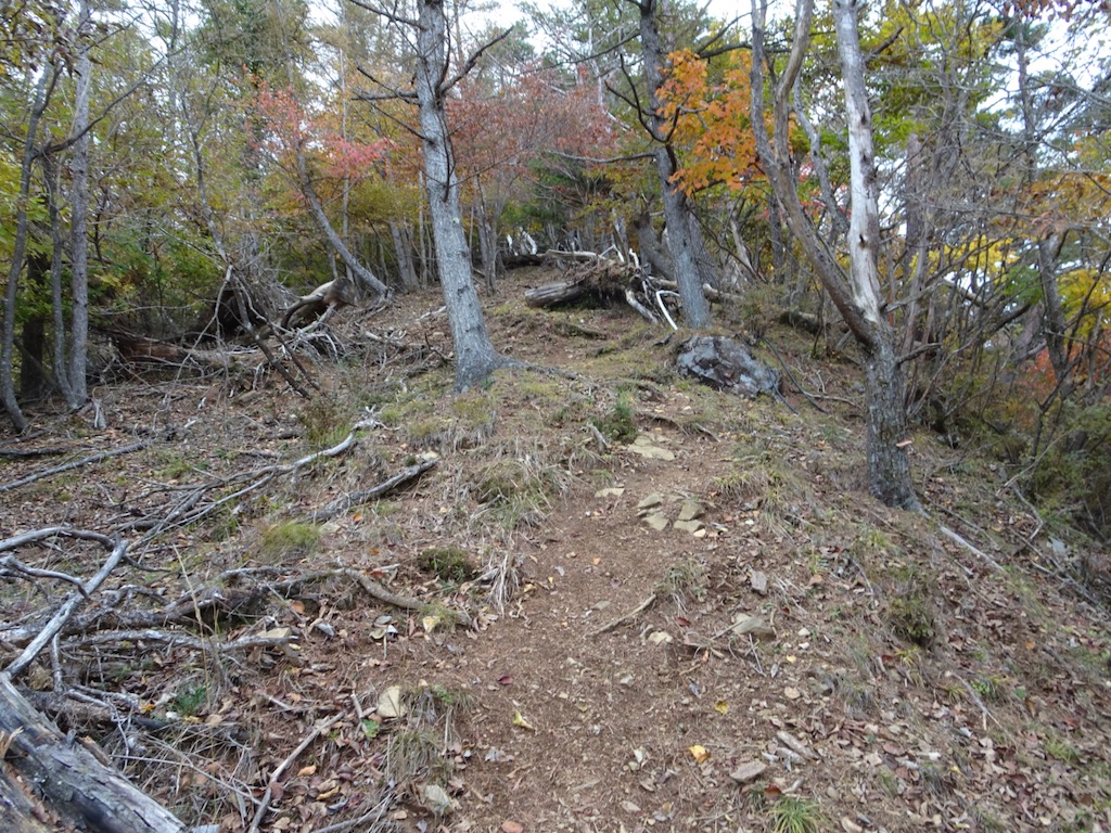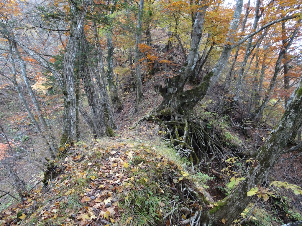 相定ヶ峰までは緩急が交互する登りが連続する。そこここで紅葉は見られるが、これからという印象。