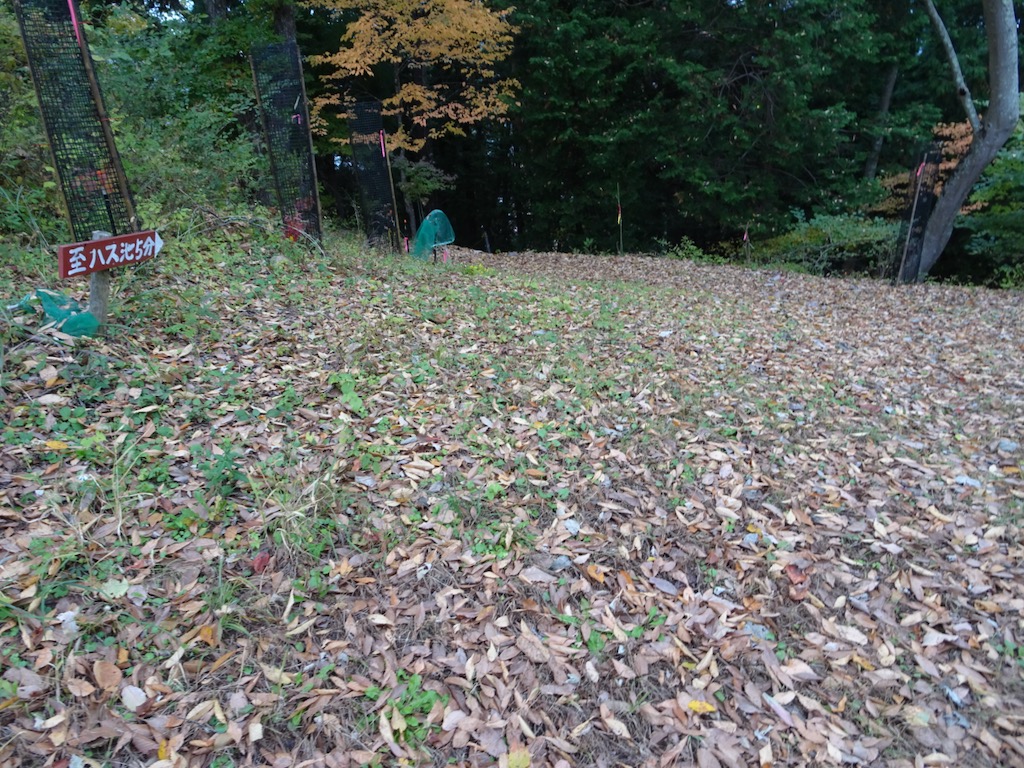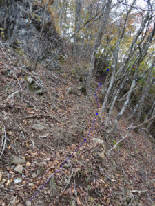 P1292を越えると、ポツポツと目印のピンクテープが出てくるようになる。