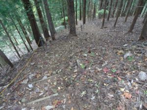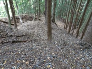 少し戻り、北東の尾根上をたどる。 鞍部で右に堂尾山公園富士見台ヘの道を見送る。尾根下をたどって行けるようだ。